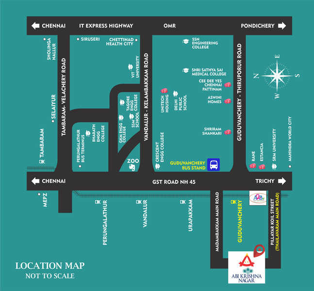 Guduvancheri is well-connected to other parts of city by road, which passes through the heart of this suburb. Prominent shopping malls, movie theatres, school, and hospitals are present in proximity of this residential project.