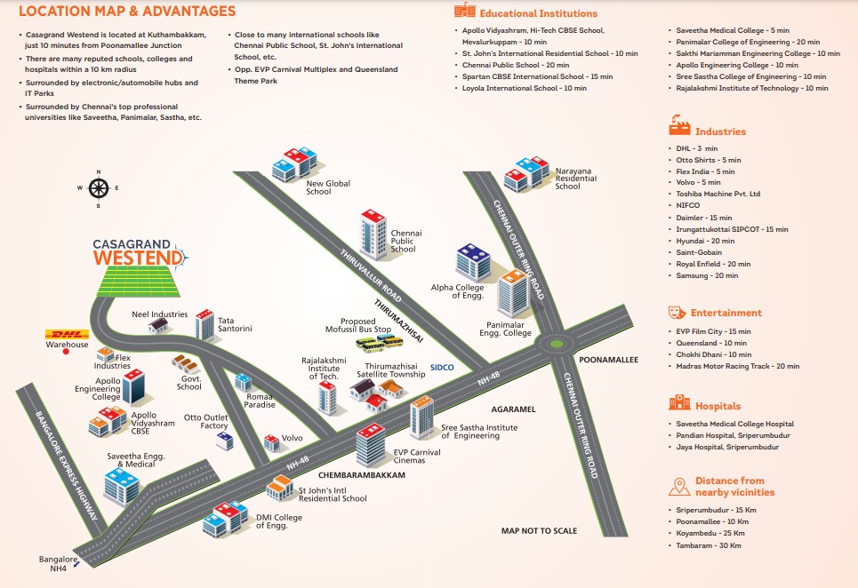 Launching Casagrand Westend Premium Villa Plots near Poonamallee an upcoming locality with outstanding connectivity and rapid land value appreciation. Just 5 minutes from the proposed Satellite Township at Thirumazhisai and 10 minutes from Poonamallee.