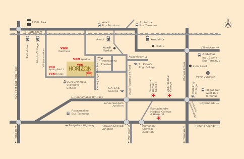 VGN Horizon, Avadi, offers easy access to Avadi Main Road, Railway Station, Pattabiram Tidel Park and the everyday essentials. Act now and own your dream plot in one of the fast developing residential areas in Chennai. VGN would be delighted to hold your hand from start to end till possession and afterwards